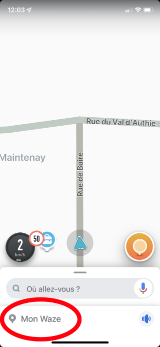 Pour accéder au menu Waze touchez le menu “Mon Waze” qui se situe en bas de votre application.
