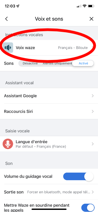 Puis sélectionnez “Voix Waze” pour choisir la voix qui va vous guider