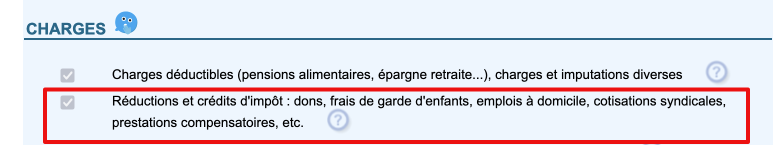 Poursuivez le remplissage de votre déclaration jusqu’à arriver à la rubrique concernant « vos charges ».