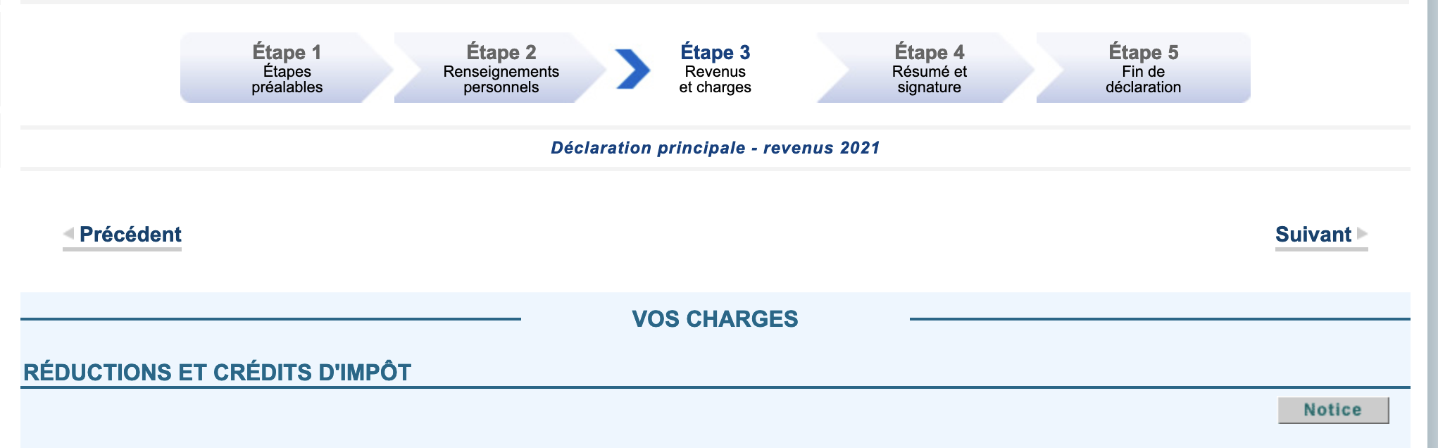 Commencez votre déclaration de revenu comme à l’habitude. Arrivé à l’étape 3, le site vous proposera de sélectionner différentes rubriques de revenus et déductions.