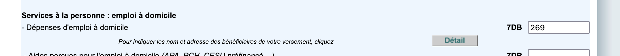 N’oubliez pas de cliquer sur le bouton « Détail » pour indiquer les coordonnées des organismes auxquels vous avez fait appel dans le cadre des services à la personne.