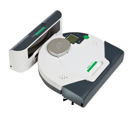 Un robot-aspirateur sur sa base